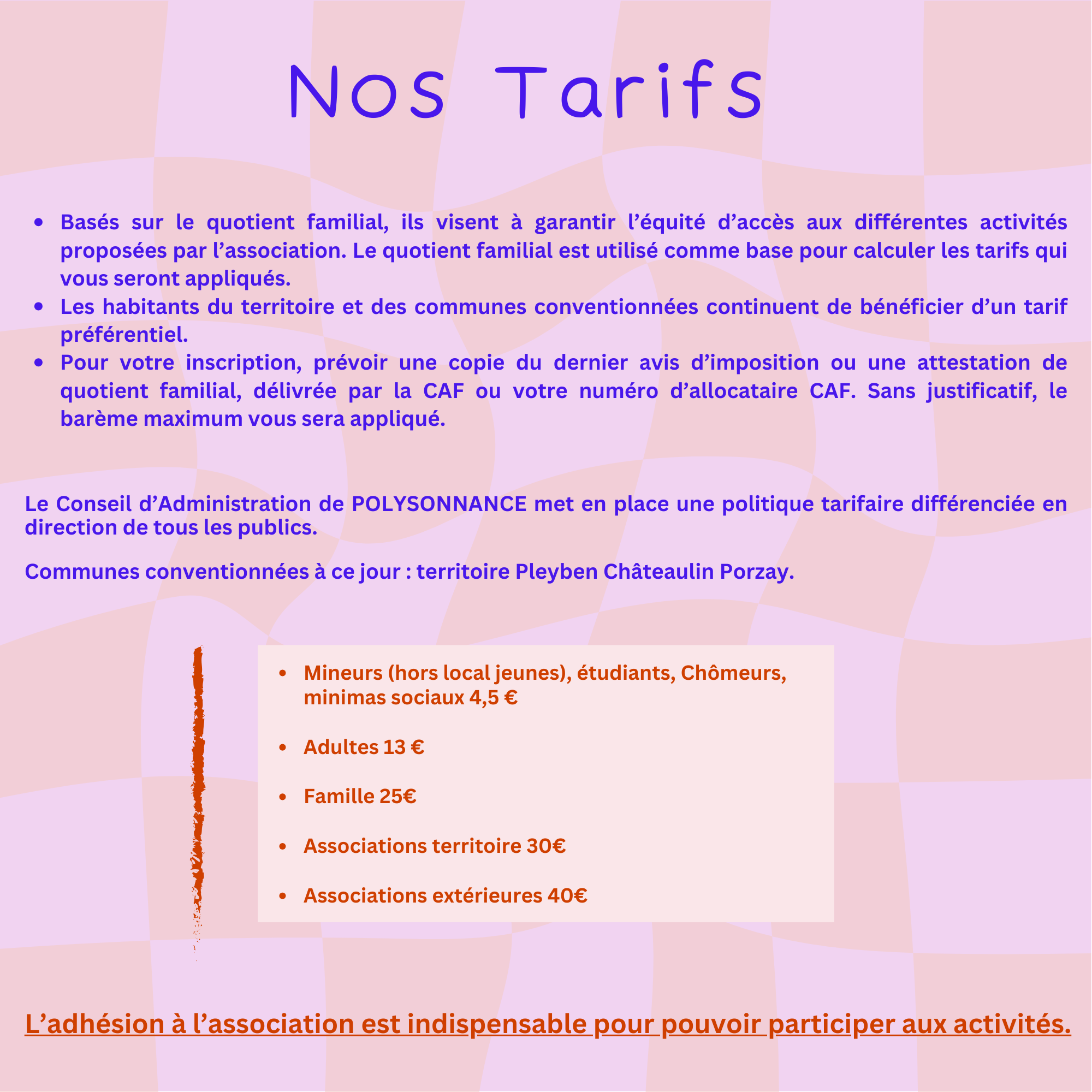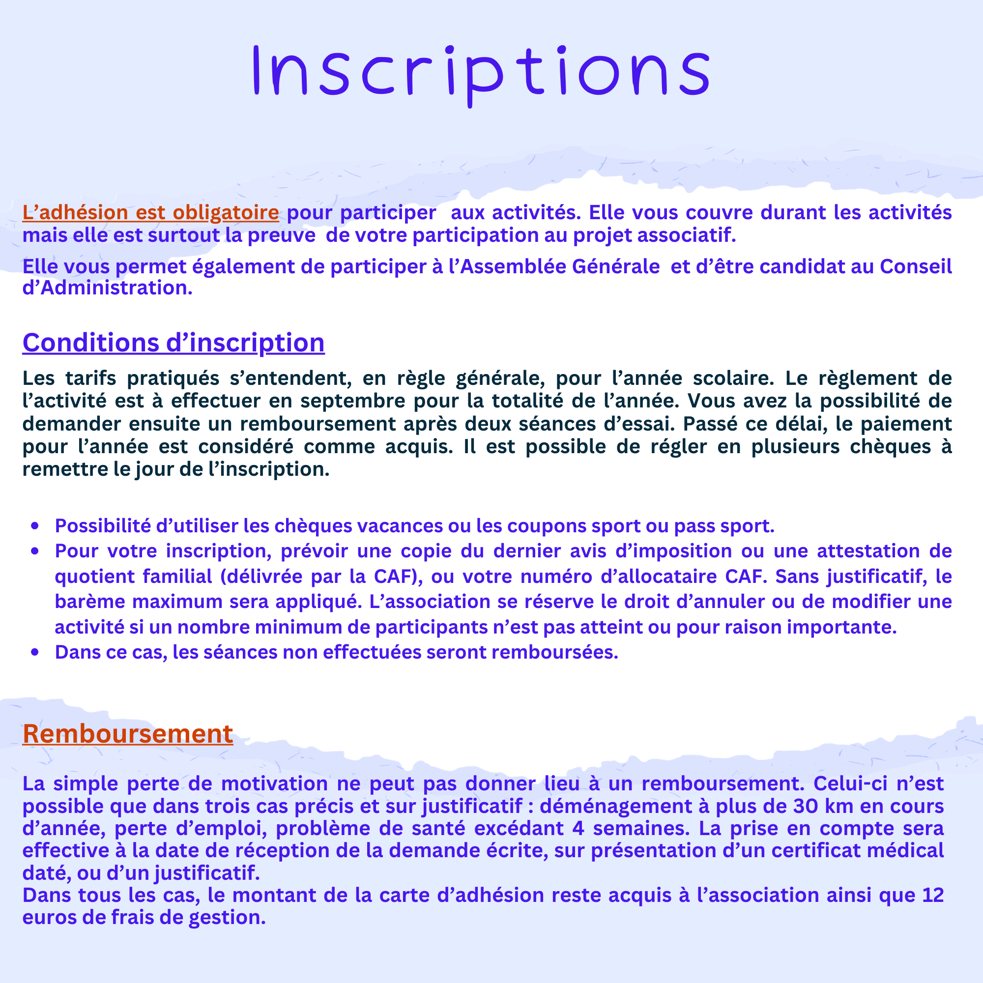 Inscriptions et politique tarifaire