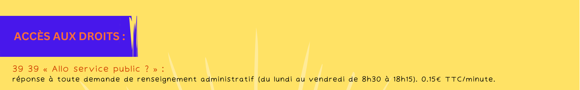 39 39 « Allo service public ? » : réponse à toute demande de renseignement administratif (du lundi au vendredi de 8h30 à 18h15). 0.15€ TTC/minute.