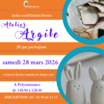 Nouvelle séance du Yoga du Rire samedi 21 mars 2026 pour se détendre les zygomatiques!!!! info et inscription: 02 98 86 13 11 Par polysonnance le 4 mars 2026 dans Dernières nouvelles, Famille 0 A decouvrirNouveauté à Polysonnance! Atelier Enfants/Parents tous les derniers samedis du mois autour de l’argile.Nouvelle séance du Yoga du Rire samedi 21 mars 2026 pour se détendre les zygomatiques!!!! info et inscription: 02 98 86 13 11Programme des sorties conviviales (adultes et mineurs accompagnés) pour le mois de mars 2026