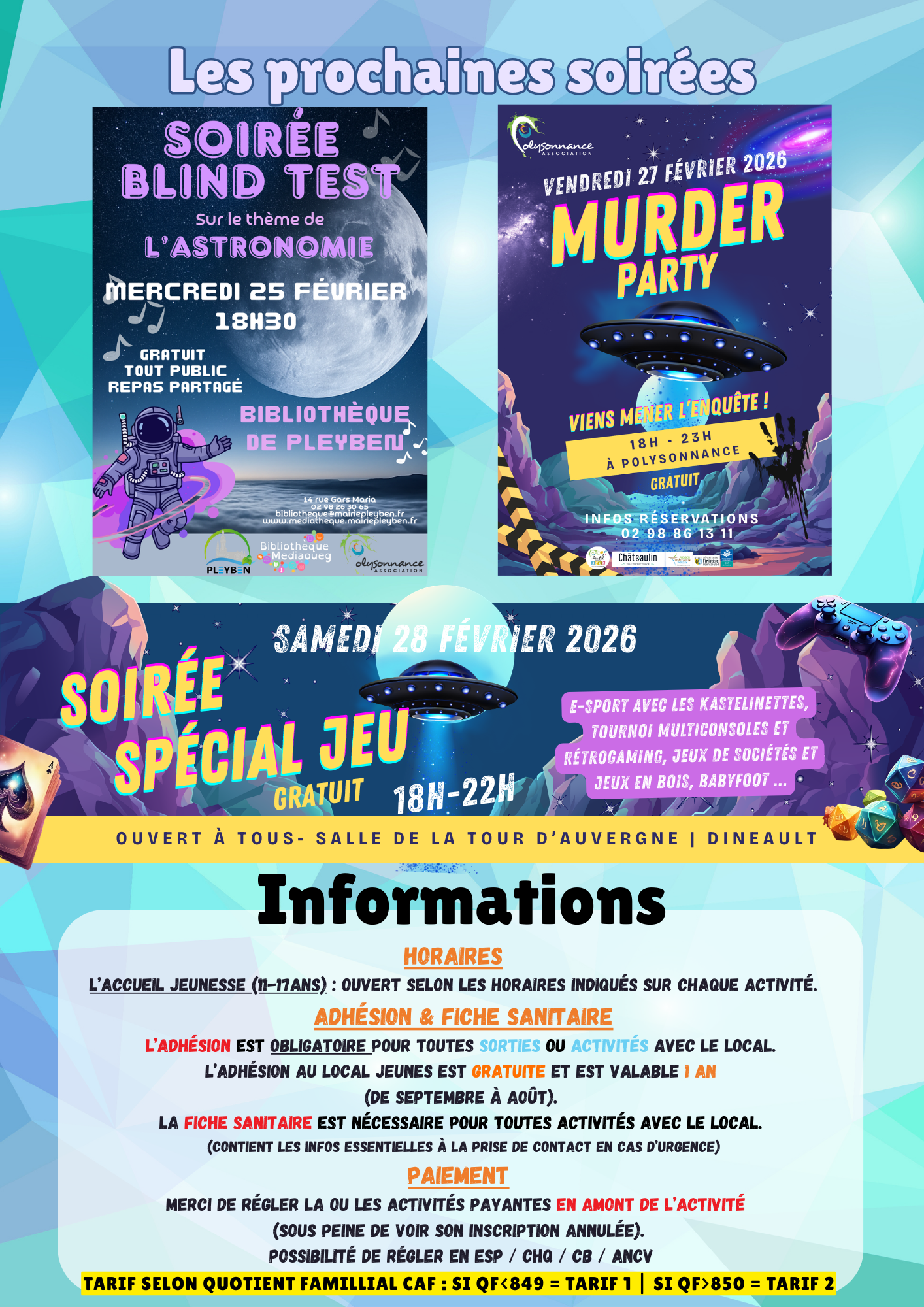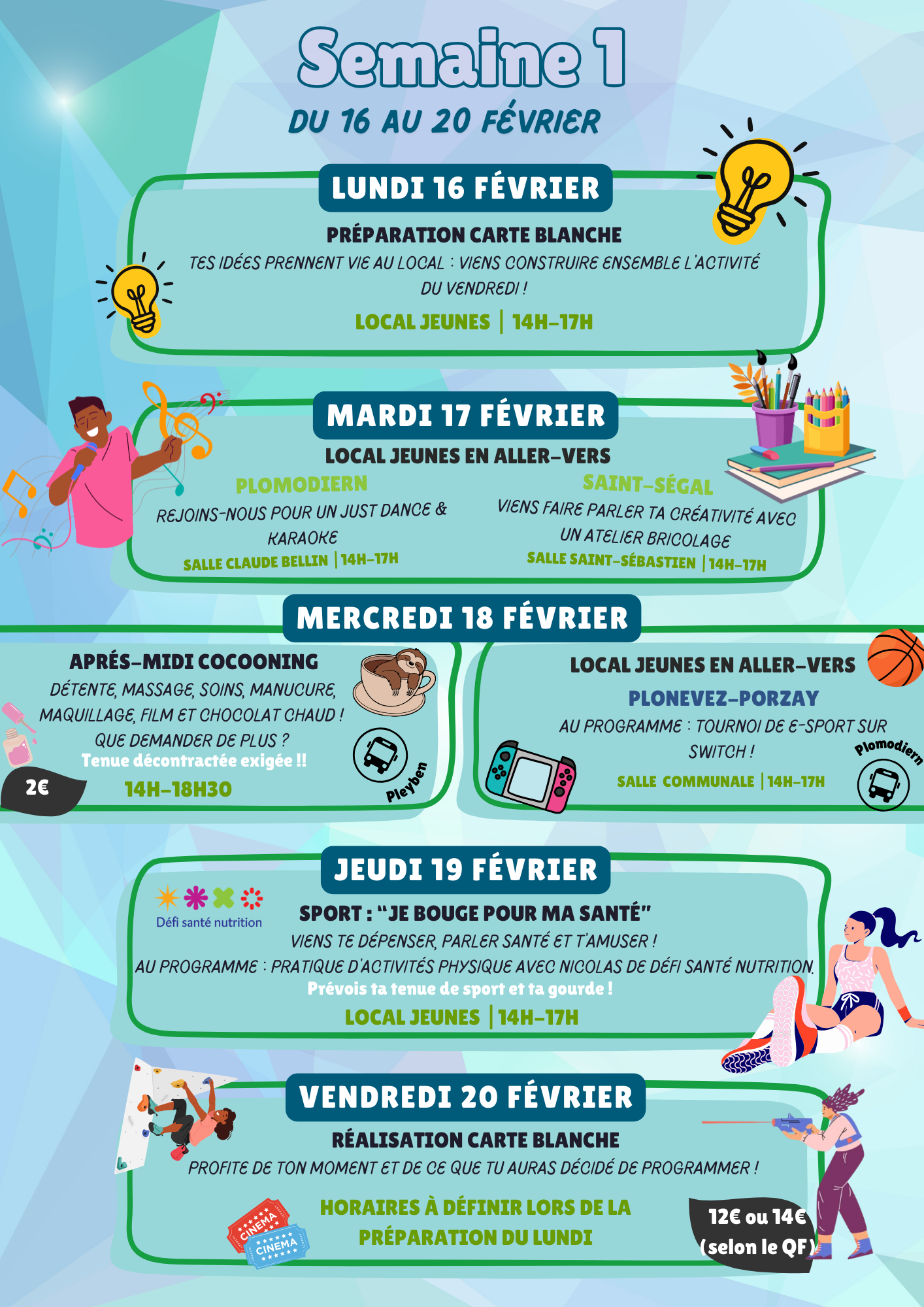 Programme des activités du Local Jeunes pour les vacances de Février 2026 Par polysonnance le 11 février 2026 dans Dernières nouvelles, Espace jeune 0 A decouvrirProgramme des activités du Local Jeunes pour les vacances de Février 2026Voici le Programme des activités en famille à Polysonnance pour le mois de Février!Sur les horaires de l’accueil, venez dessiner votre robot! Une surprise vous attend!!!