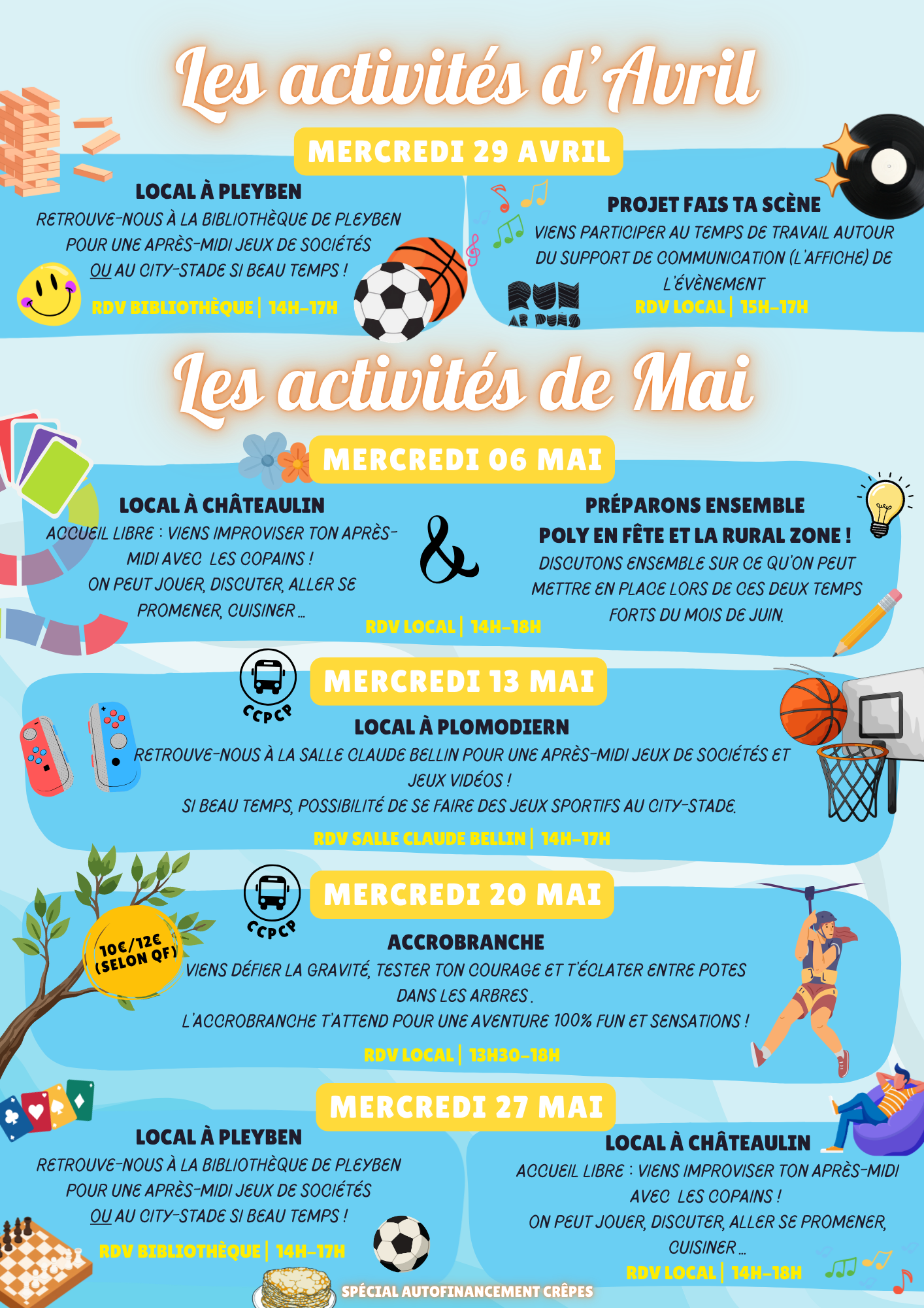 Voici le Programme du Local jeunes pour Avril, Mai et Juin 2026!